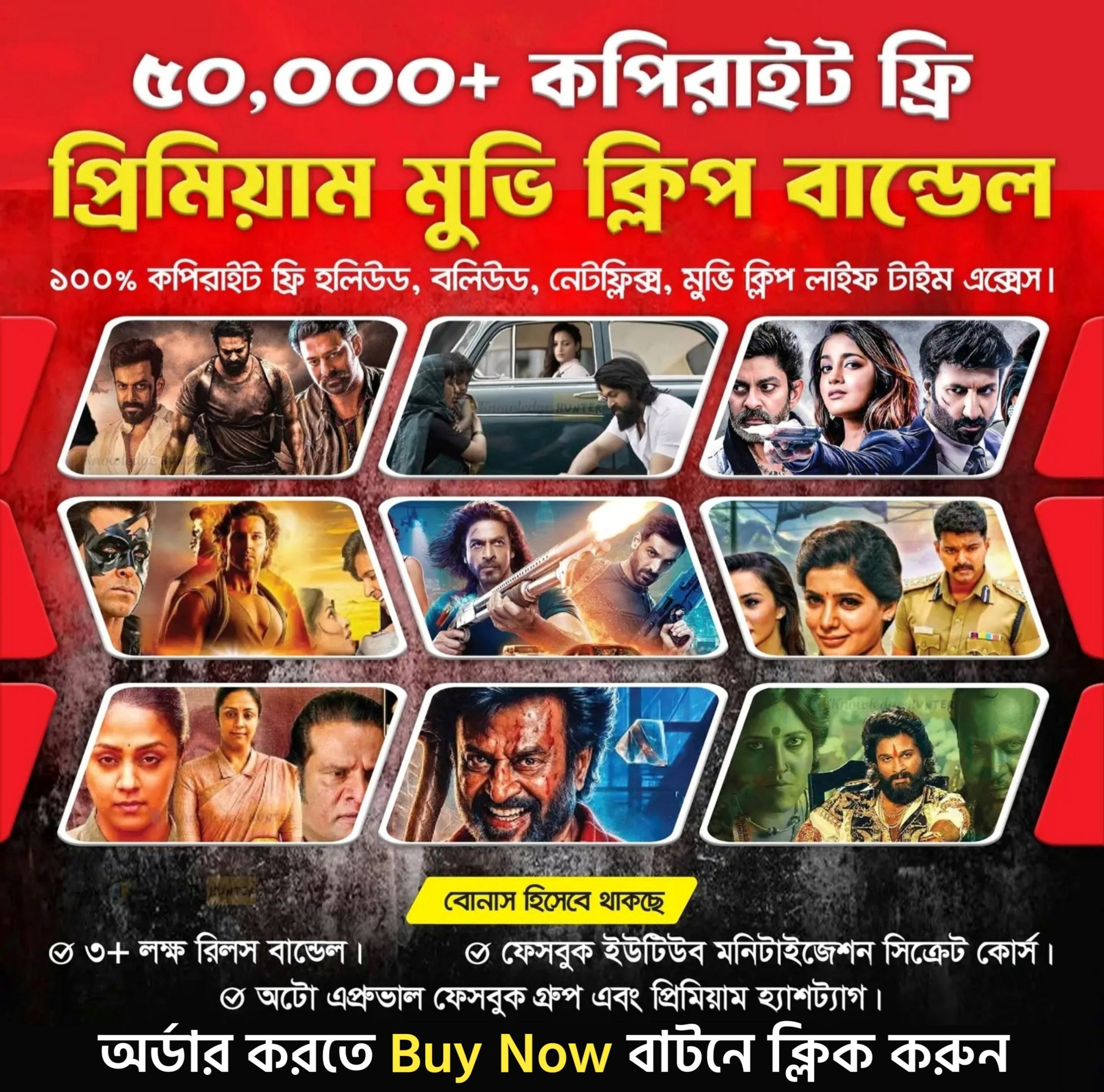 🎬 ৫০,০০০+ রেডি-টু-আপলোড কপিরাইট ফ্রি মুভি ক্লিপ বান্ডেল (হলিউড, বলিউড, নেটফ্লিক্স)