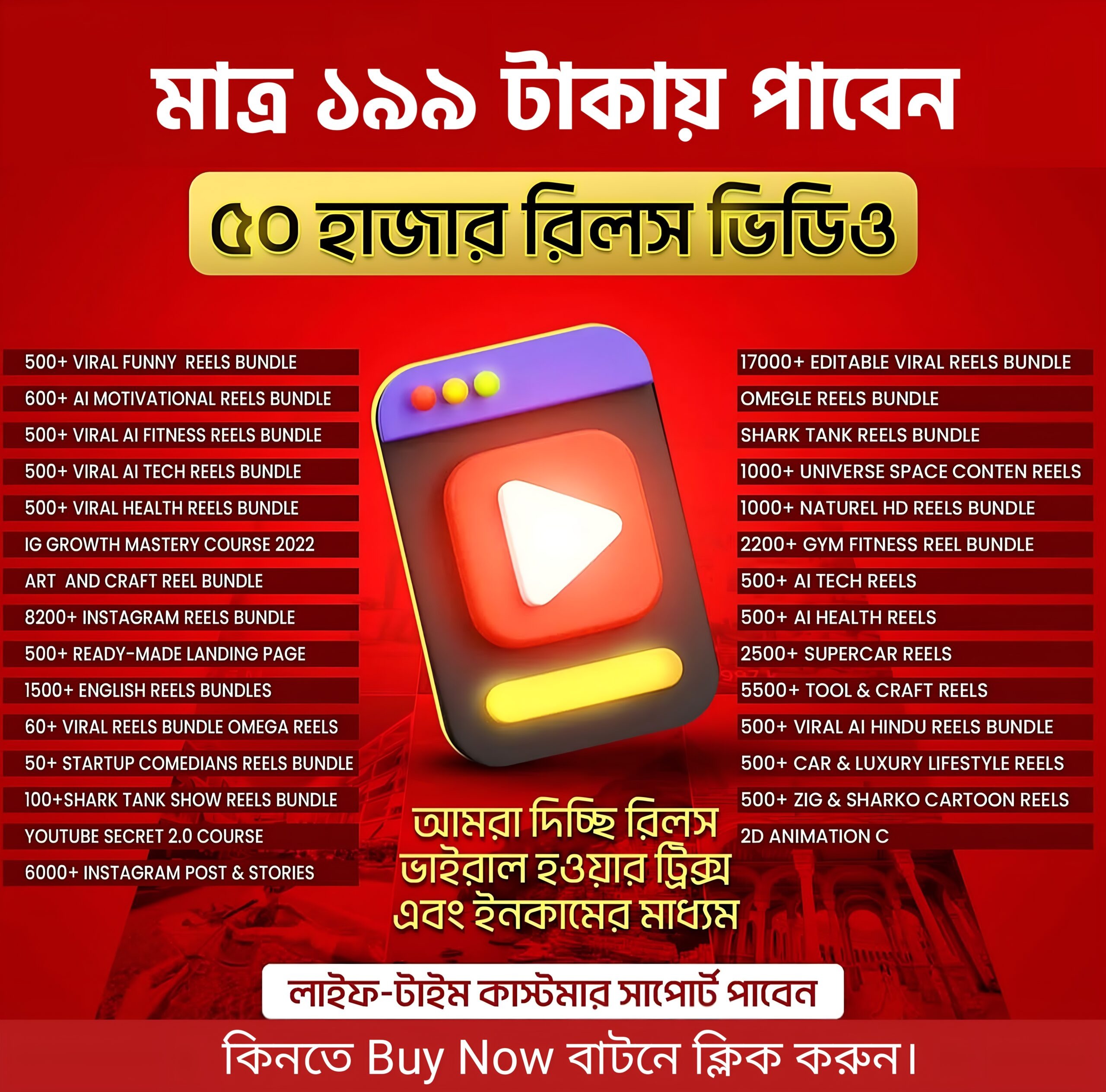 50000+ রেডিমেইড AI Reels ভিডিও অফার প্রাইজে মাত্র ১৯৯ টাকা